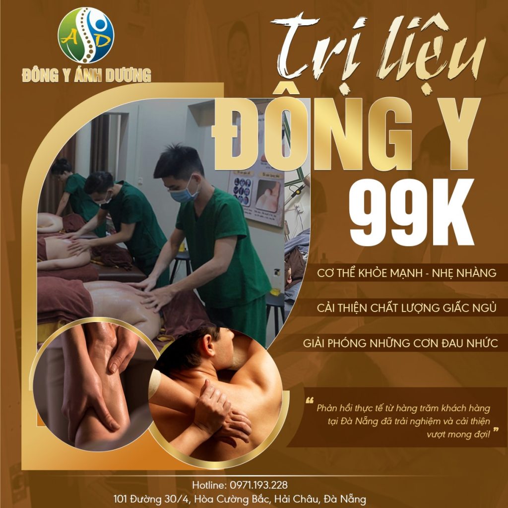 Đông Y Ánh Dương là địa chỉ trị liệu cơ xương khớp uy tín tại Đà Nẵng, chuyên các phương pháp điều trị theo Y học cổ truyền như châm cứu, bấm huyệt, xoa bóp trị liệu và phục hồi vận động. Với đội ngũ kỹ thuật viên tay nghề cao, giàu kinh nghiệm và luôn làm việc bằng sự tận tâm, Ánh Dương đã trở thành nơi được nhiều khách hàng tin tưởng khi gặp các vấn đề về đau nhức, tê bì, thoái hóa hay chấn thương cơ – khớp.